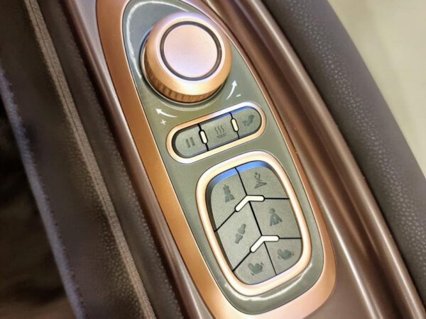 Bảng điều khiển được nâng cấp toàn diện, lấy cảm hứng thiết kế từ điều khiển trung tâm nội thất ô tô hạng sang, tổng thể khá trực quan, mang đến những trải nghiệm sử dụng được đơn giản và dễ dàng nhất là người cao tuổi. Bệ tay đối diện được tích hợp mặt đế sạc không dây cho smartphone vô cùng tiện lợi để người dùng có thể thoải mái sử dụng trong quá trình massage. Ngoài ra, nhà sản xuất còn bố trí một điều khiển cầm tay có dây, với giao diện đơn giản, thao tác chạm linh hoạt giúp bạn có thể điều khiển dễ dàng hơn trong quá trình massage.